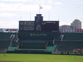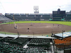 早上應peng要求去甲子園朝聖,不過我太笨蛋了,想說JR的「甲子園口」顧名思義應該就在甲子園附近,加上有PASS為了省錢就搭JR前往,沒想到到了之後路上的歐巴桑表示還要走半小時!!所以就依她的建議撘公車前往,真的有不短的距離說,好險沒有用走的(都怪JR站名亂取>"<)。所以要前往的人,記得要搭阪神電鐵喔~!!不要跟我一樣耍笨了(peng:要跟你一樣笨還真不簡單!!)。 anyway,千辛萬苦來到甲子園,原本擔心沒比賽無法進去參觀,不過還是厚著臉皮詢問售票的阿姨,那個阿姨還真可愛,聽到我想進去參觀,就比著「噓」的手勢,然後又比一下旁邊的小門,意思是叫我們偷偷進去,我們很開心的偷偷摸摸溜進去(路人:大家都看到了...),裡面還有據說是社會組的在比賽(or練習?),可以看到電視或漫畫上才可以看到的甲子園球場,也算是了了一件心願啦!不過很怪的是,從地鐵站望過去可以看到的甲子園招牌(下圖),走到甲子園球場後竟然完全找不到~~?? @@"