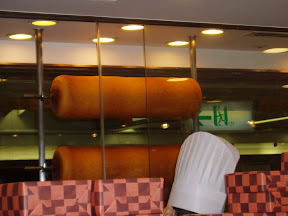 去程耍笨也就算了,沒想到回程情況更糟!我們看到阪神地鐵與JR有一站站名相同,就想說應該在附近可以轉程(為了省錢),沒想到出站之後才發現,根本差了十萬八千里阿!!厚!!JR跟阪神,你們兩個感情可以再不好一點啦~>"<。好不容易回到梅田,經過地下街發現有一家蛋糕店排了長長的人群,基於排隊就是好吃的心態,我也好奇的跟著排下去。因為早上的耍笨加上排隊花了不少時間,使得後面的行程變的滿趕的。(誰叫吊在棍子上面的蛋糕看起來那麼好吃 :Q)