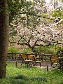 公園裡開滿櫻花的小徑及公園內一角的涼椅(這張超有感覺~)