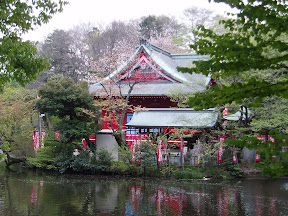 不知名的湖中小屋,超級像神影少女裡面的那間溫泉屋!! 而且屋子旁邊剛有也有一座紅色的橋呢!!