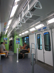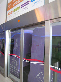 輕軌列車到站囉~很可愛的粉紫車身跟玻璃門,感覺聖淘沙的色調刻意地粉圾呢!