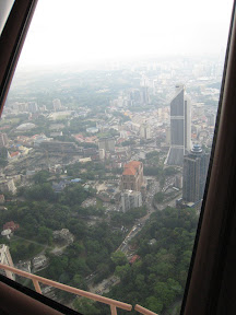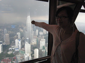 吉隆坡塔高度雖然僅有421公尺,不過因為建築在山坡上(害我們爬的要死>"<)