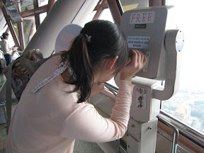 觀景台上還有免費的高倍數望遠鏡,其中當然以雙子星塔前方的最搶手啦!我可是排隊才等到的呢!